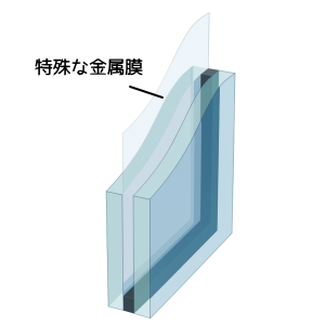 特殊な金属膜をガラスに挟み込むことで、遮熱性・断熱性を高めたガラス。
