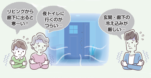 特にご年配の方は、部屋と玄関の温度差で体に負担がかかり、ヒートショックを起こす危険があります。