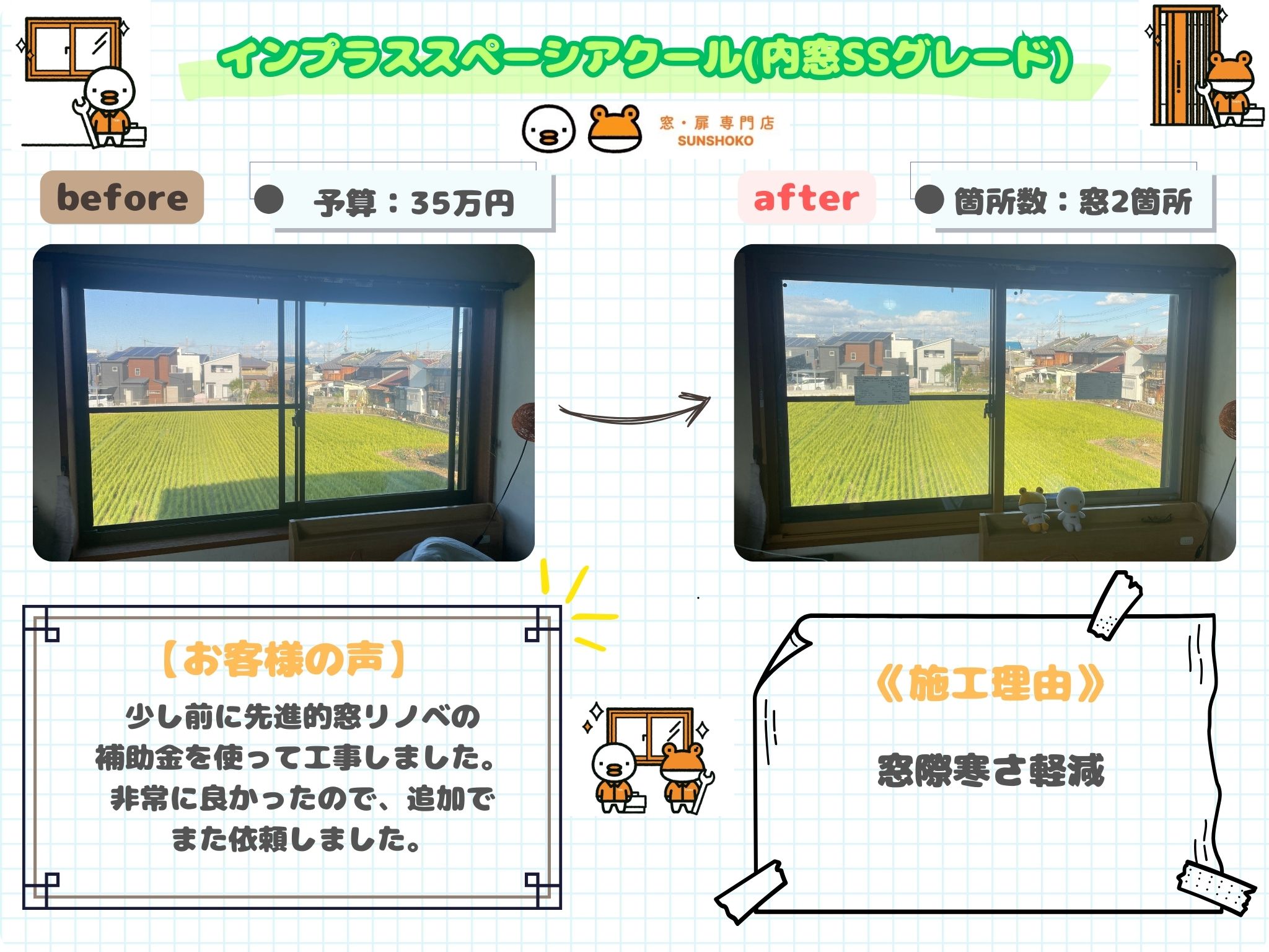 こんにちは☺ 今回の施工事例は和泉市にお住まいのお客様で インプラス+スペーシアクール工事です👧✨ 先進的窓リノベの補助金の工事です(-ω-)/✨