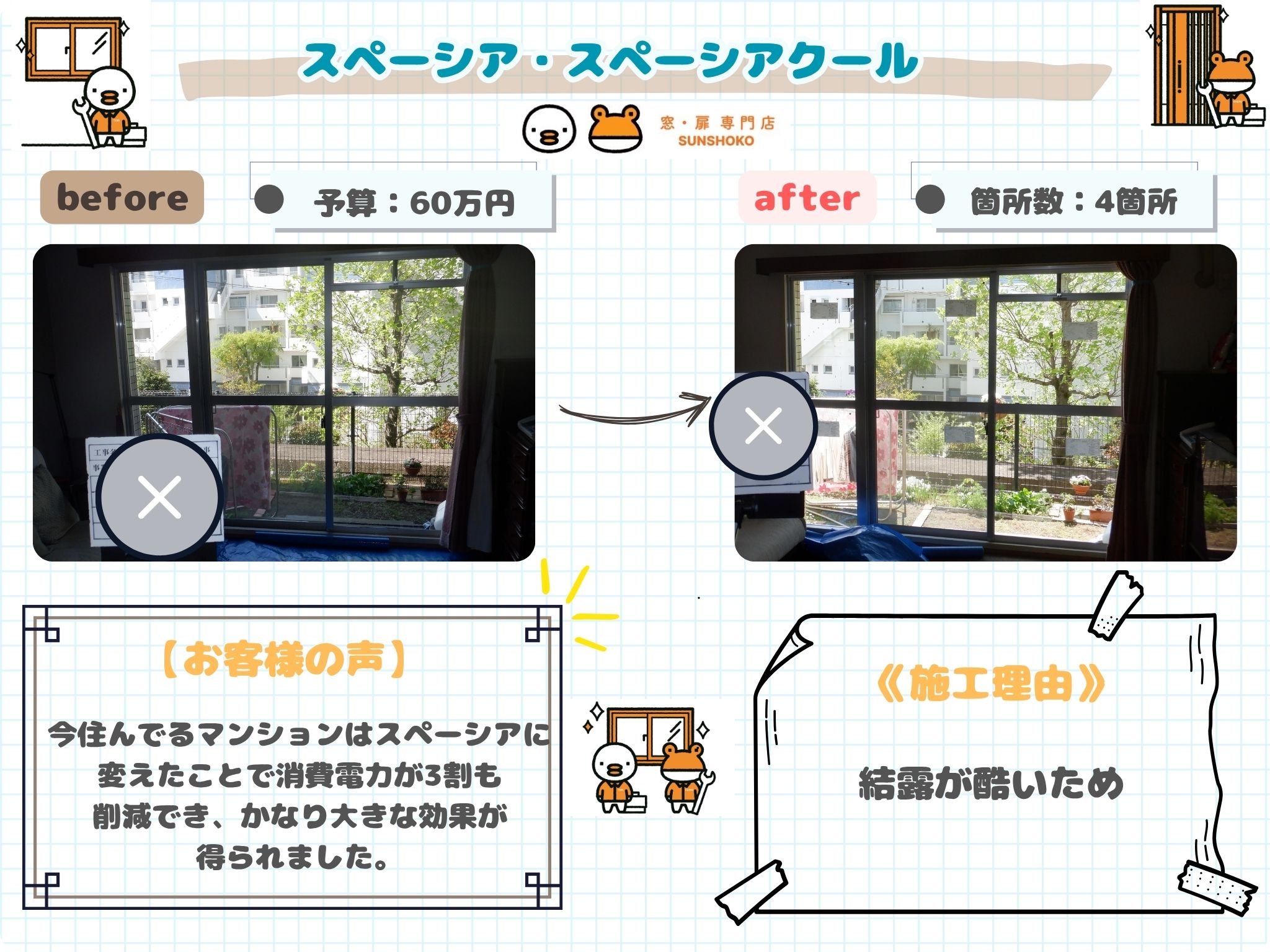 ・マンションの窓枠をそのまま活かし、ガラスのみを【スペーシアクール】に交換!